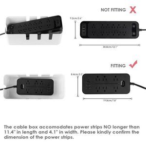 🧿The wooden style cover makes it harmonious for home decoration. NOTE that this cable management box DOESN'T accomodate any power strips longer than 11.4 inches (29 cm) and wider than 4.1 inches (10.5 cm). Please kindly confirm the dimension of the power strips.