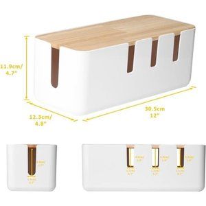 Cable Management Box by Baskiss, 12x5x4.5 inches, Wood Lid, Cord Organizer