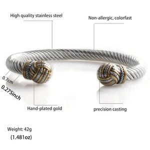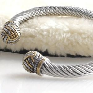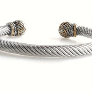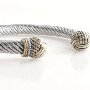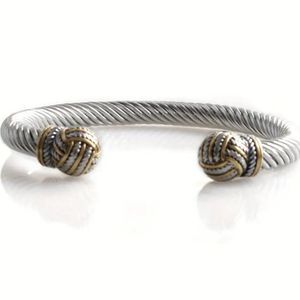 This elegant bracelet features a stunning silver design with intricate gold knot accents. Perfect for adding a touch of sophistication to any outfit. Very similar to David yurman.
