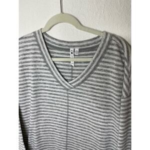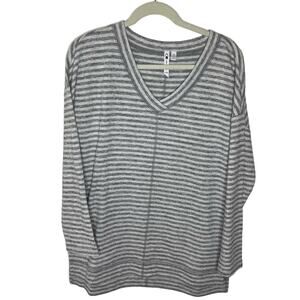 Cable and Gage Gray and White Striped Long Sleeve Tunic Size Medium