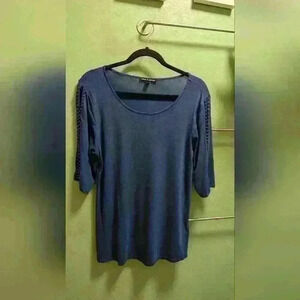 Cable and Gauge Blue Beaded arm top size L. 3/4 sleeve