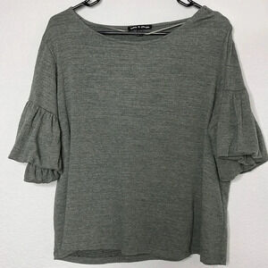 Cable and Gauge | Flutter Sleeve Top in Olive Green | Sz XL
