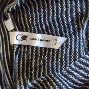 Incredibly SOFT black and white narrow stripe knit tunic top with front patch pockets.