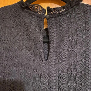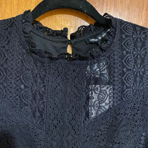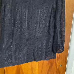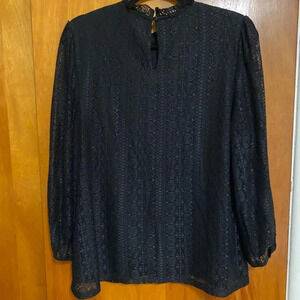 Cable and Gauge Women Black Crochet Elastic Cuff Long Sleeve Flare Blouse Size L