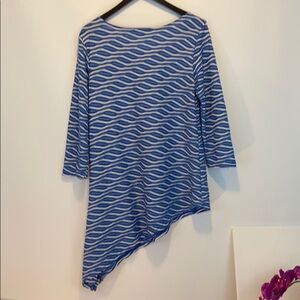 Cable and Gauge Women’s Blue and White High and Low Top Blouse Size L