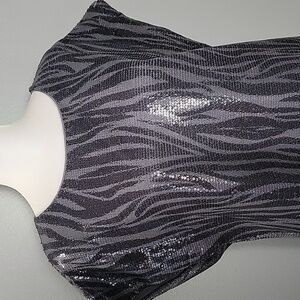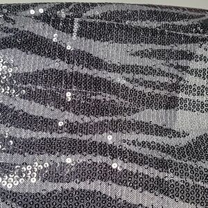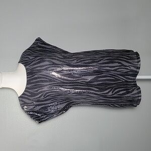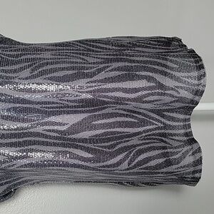 Tunic style top, lined, sequins in zebra print in shades of gray.