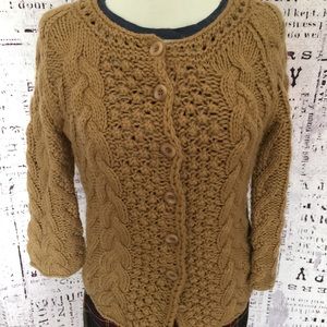 Easy transition from work to laid back weekend style with this cozy cable knit cardigan. 3/4 sleeves. Material: 100% acrylic. Hand wash cold.