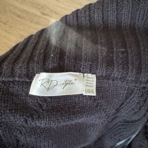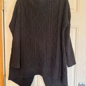 Size Large. Oversized cardigan. It is black. The color in the picture of the back is lighter than the actually sweater color. Very cozy - can be dressed up or down. See pics for further details. Gently preloved.