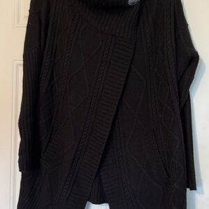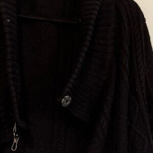 Cable knit cardigan. Size L. Color is black. Oversized. Snap and hook closure.