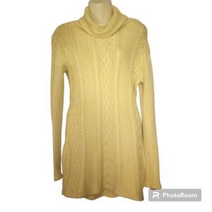 Cable knit turtle/cowl neck tunic viscose and nylon sweater/dress