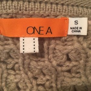 Cable sweater with a poncho like feel. Front pocket where hands can go all the way through. I do wear a tank top under this as there are small holes in the cable material. Adorable over leggings