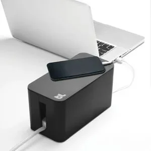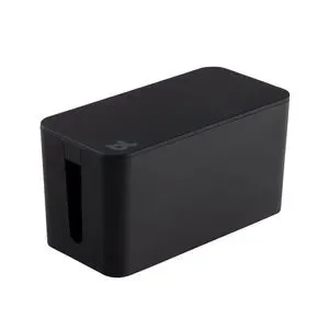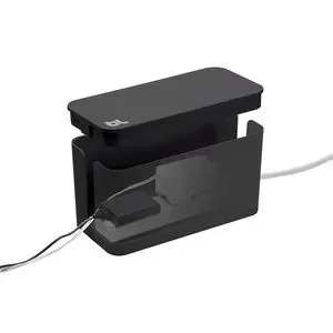 CableBox is a cable organizer that hides messy, loose, tangled cables under the desk, next to the computer, or behind the TV. CableBox works with both wide and long surge protectors.