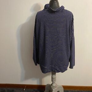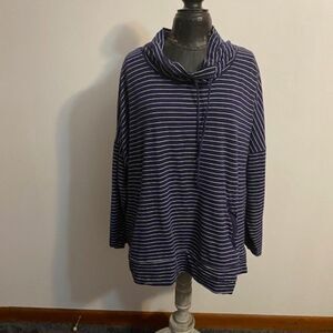 Cable & Gauge Blue/White stripe cowl neck 3/4 sleeves top, size 3X
