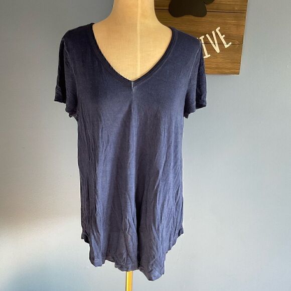 Cable & Gauge Blue V-Neck Burnout Relax Short Sleeve Tee T-Shirt- L