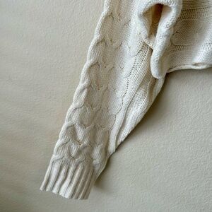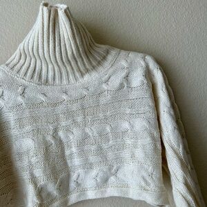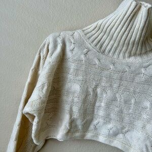 Cableknit Sweater Crop Long Sleeve Turtleneck Cream Soft by Shein Size Small