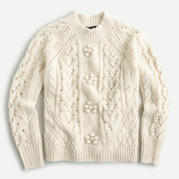 Cable-knit pointelle sweater with popcorn flowers NWT