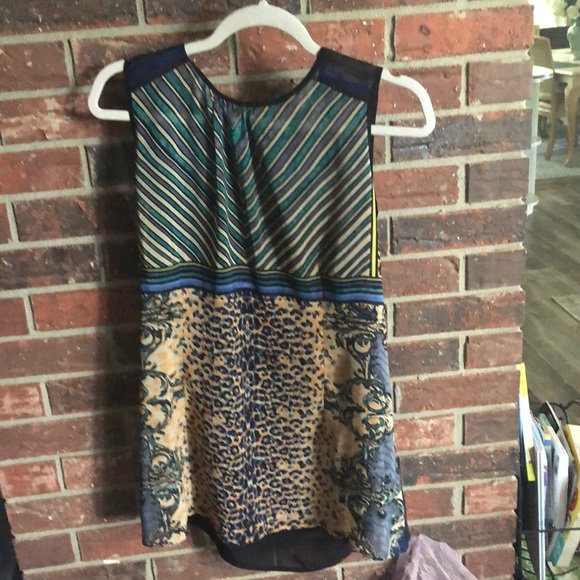 Multicolored sleeveless Cabo tunic wit solid black back and 1 button closure