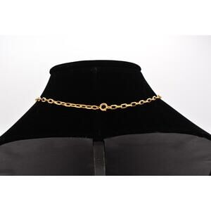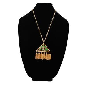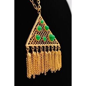 Cabochon Chain Tassel Necklace Pendant Green Gold Tone Dangle Vintage BinR