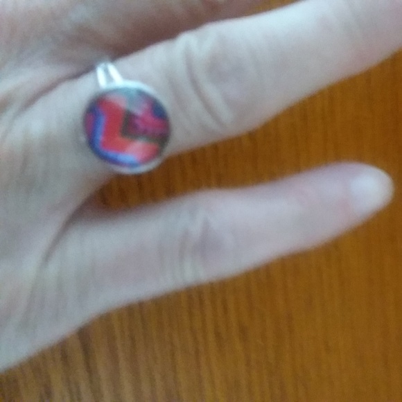 Glass Cabochon high quality aztec looking silver plated adjustable fits size 5-8