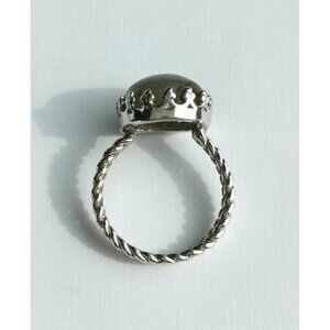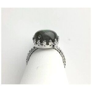 Cabochon Labradorite Ring in Sterling Silver Tudor Revival Design