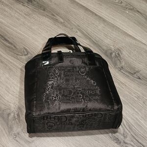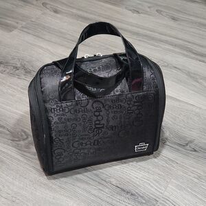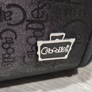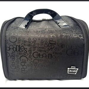 Caboodle Black Signature Makeup Travel Case, no flaws and hook to hang with 3 zipper mesh pockets and interior has elastic for brushes and hot pink easy clean lining. Zippers work great and no flaws.