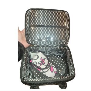 Caboodles Black Faux Patent Leather Sassy Tapered Makeup Tote Travel Case Set