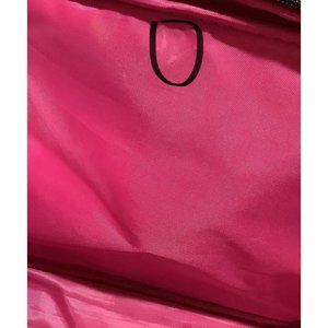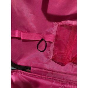 The clear window has some minor scuffs and there are 2 minor makeup spots. Please see all photos. Otherwise in great condition. Zippers work great.