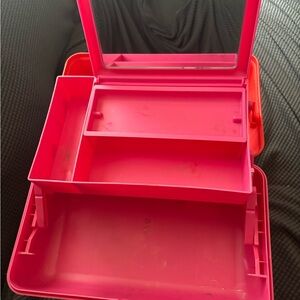 Bright red and pink Caboodle cosmetic case featuring the Fruity Pebbles logo. Ideal for stylish meal storage. This has been used but in excellent condition.