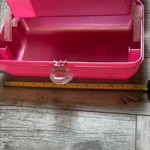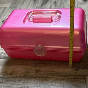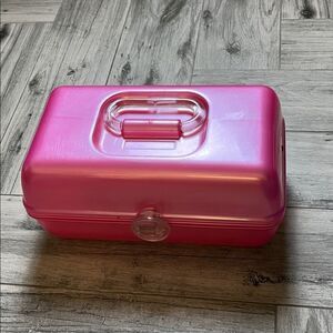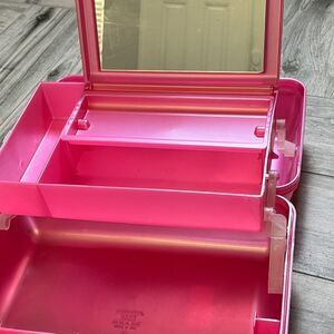 Stylish Caboodles organizer in pink. Features a built-in mirror. Ideal for makeup storage.