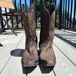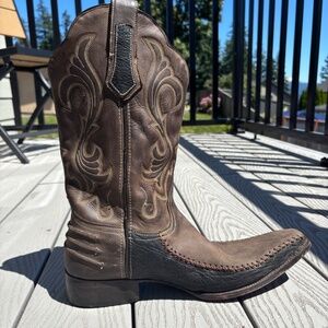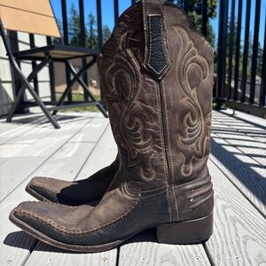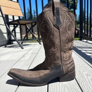 Caborca Boots Brown Black Embroidered Leather Western Cowboy Work Men's US 10