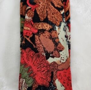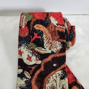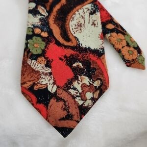 Cabralli Collection Leaves Floral Brown Orange Olive Green Cream Necktie Tie. Perfect for that autumn fall wedding, dance, prom or work! Deep autumn fall colors with leaves and floral flower designs. 4" wide point at end of the tie. 100% rayon. No rips, snags or stains. Like new condition!