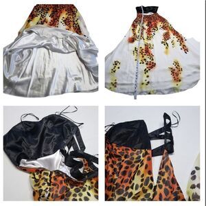 Caché Black Bandage & Animal Print Long Gown Size 8