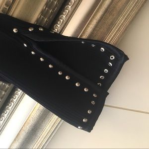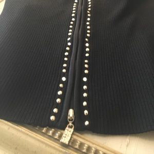 Caché Black & Silver Jeweled Top! Long sleeve with silver studded slits on each cuff! Jeweled zipper lining and tassel✨ No longer made, true vintage peice! Retail was $115