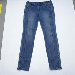 Caché Jeans Women's 6 Blue Medium Wash Denim Pockets Ankle Zip Fly Skinny Preppy