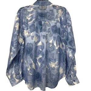 Caché Vintage Sheer Floral Button Down Blouse M Blue White Oversized Made in USA
