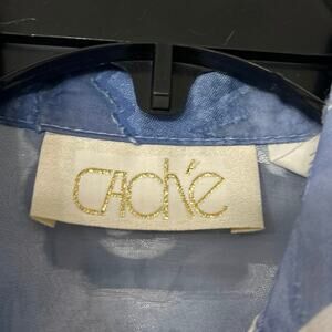 Caché Vintage Sheer Floral Button Down Blouse M Blue White Oversized Whimsical