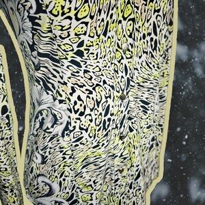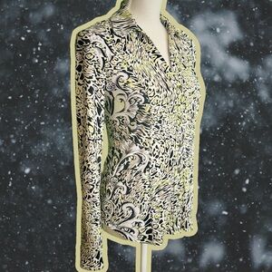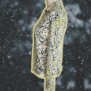 Caché Vintage Y2K Chartreuse / Lime Green Leopard & Brocade Button Down Top XS