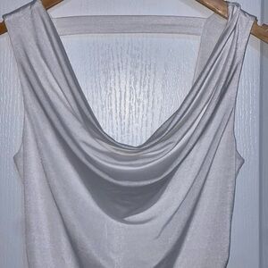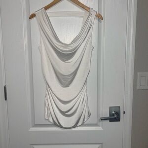 Caché Women's Cowl Neck Tank Top Strap Back Draped White Silky Small