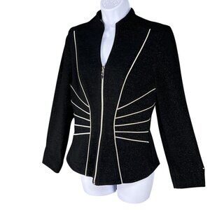Caché Womens S Black Zip Up Blazer Silver Piping Structured Fit Career Office