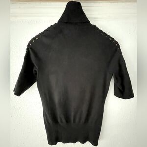 Caché black short sleeve sweater turtle neck with braid pattern on sleeve Sz: S