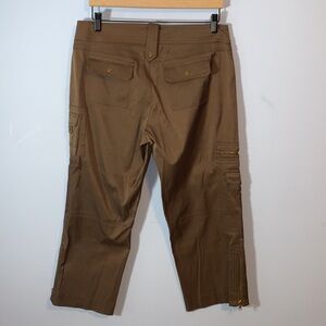 Caché size 10 brown cargo capris satin canvas brass hardware vintage Y2k