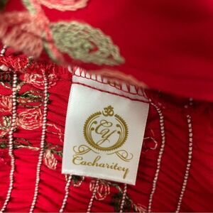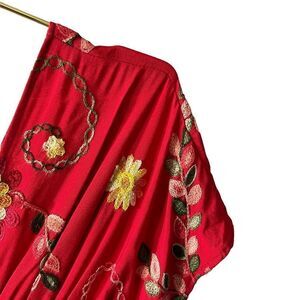 Cacharitey Made in Mexico Smocked Embroidered Double V Midi Dress