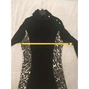 Cache Turtleneck Leopard Animal Print Top Sm Black Preppy Office Comfy Classic