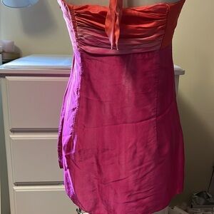 Cache 100% silk halter top with rhinestones and padding, hot pink and orange