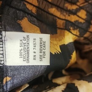 Cache 100%silk on or off the shoulder blouse animal print with hand embroided black,gold,and brown stones ,size small but can fit larger