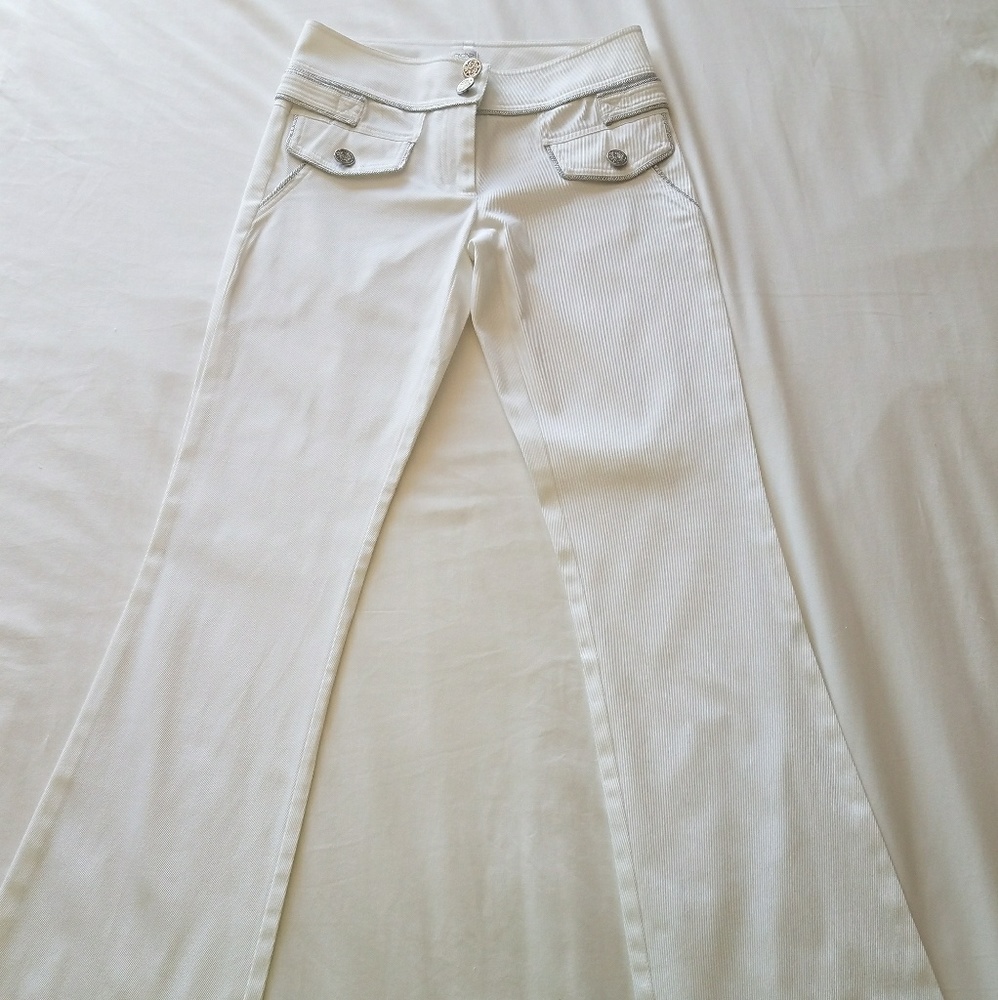These beautiful classy pants are eye catchers! The tailored lines, shimmer of the silver accents and gorgeous silver buttons make these pants a must have!