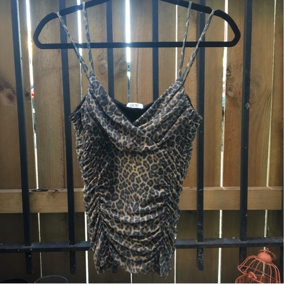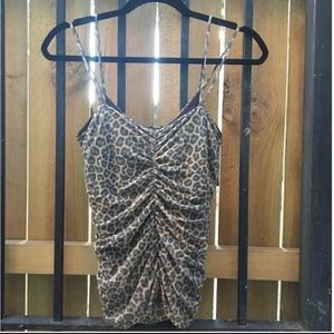 Double strapped leopard print tank top. Great fit as a push up top! Nice material. No complaints I love this top! Its stretchy so it fits size 2-6.