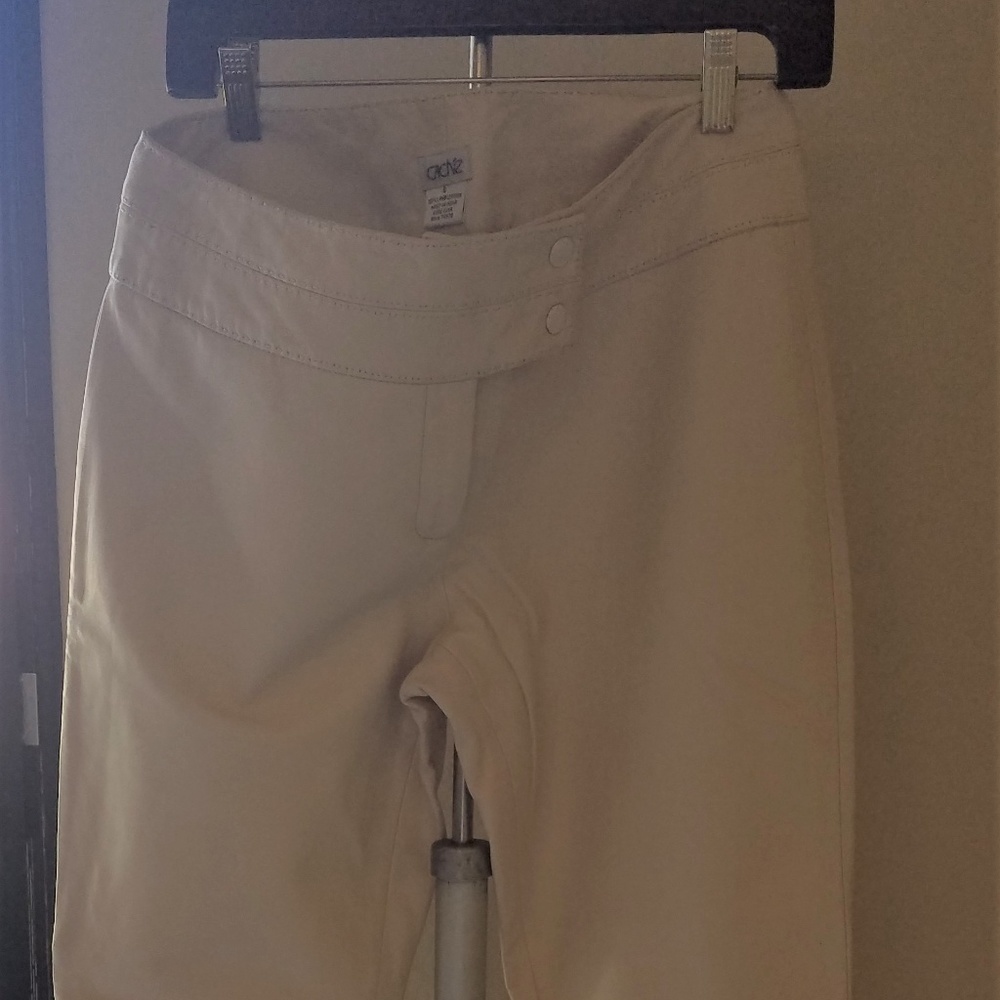 Cash'e women's 100% lambskin leather pants with lining pre-owned in very good to excellent condition, Creme in color size 2
