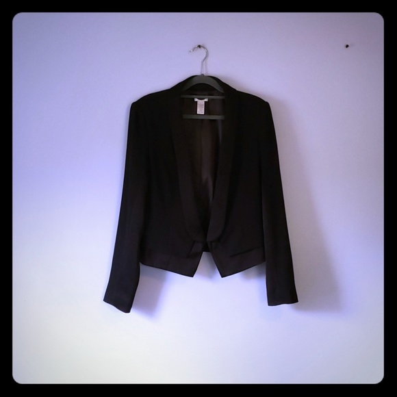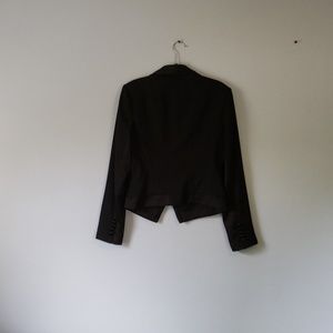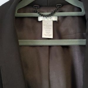 Cache blazer with detailing on the trim as well as on the sleeve. This winter season blazer is a tuxedo style, in the color black and a size 8. In like new condition.