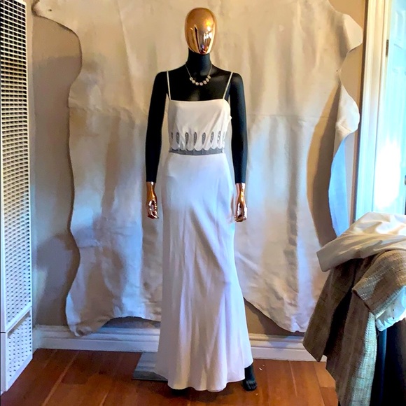 Cache’ Long evening dress with beading Around the waist in teardrop designs...with Beading Spaghetti straps